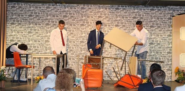Bei tropischen Temperaturen in der Aula wurden am 24.06.2019 erst die Klassen R10 und H9 und dann am 27.06.2019 die Klassen G10a und G10b von der Gesamtschule Fischbach verabschiedet.