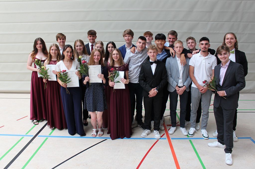 Für die feierliche musikalische Untermalung sorgten ein Pianist der 8en Jahrgangsstufe sowie die Pianistin einer 9. Klasse. Herr Singer begrüßte die sehr zahlreich erschienenen Gäste, Herr Bürgermeister Kündiger ehrte die besten Abschlusszeugnisse im Realschul- und Hauptschulzweig. Der Förderverein zeichnete die sozialsten Schüler aus, ehrte den Jahrgangsbesten des Gymnasialzweigs und bedankte sich bei allen aktiv an den Abschlussfeiern im Hintergrund Mitwirkenden. Die Klassenlehrkräfte hielten abschließend jeweils eine kurze Abschiedsrede an ihre jeweilige Klasse, bevor sie jeder Schülerin und jedem Schüler einzeln ihr Abschlusszeugnis überreichten.