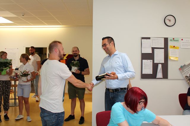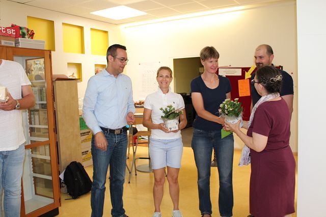 Die Schulleitung und der Personalrat verabschiedeten sich am letzten Schultag von Frau Schmidt, Frau Wirth und Herrn Berin sowie von Herrn Petrasek, der uns im letzten Jahr in Mathematik und Physik ausgeholfen hat und wahrscheinlich im kommenden Schuljahr nicht weiter an der GSF tätig sein wird. Außerdem verabschiedeten sich der Personalrat und das gesamte Kollegium auch von Herrn List.