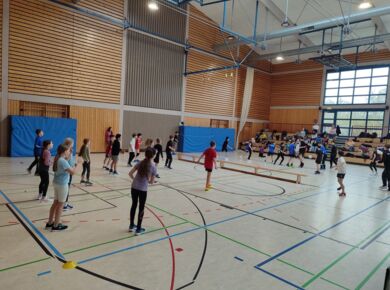 Bereits vor den Osterferien, am 19. März 2024, fand das alljährliche „GSF-Oster-Völkerballturnier“ der Jahrgangsstufen 5 und 6 statt. Von der 3. - 6. Stunde spielten und kämpften die acht Klassen in der Fischbacher Staufenhalle um die Wette. In jeweils zwei Gruppen traten alle fünften und sechsten Klassen gegeneinander an. Nach einer emotionalen Gruppenphase und spannenden Platzierungsspielen konnten „The Hunters“ aus der G5b und die „Black Panthers“ aus der G6a die Turniere für sich entscheiden und sich zum diesjährigen GSF-Völkerballturnier-Sieger krönen.