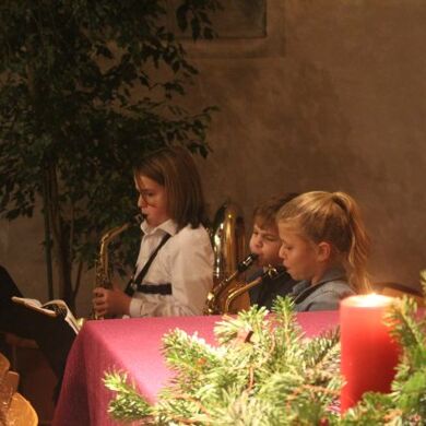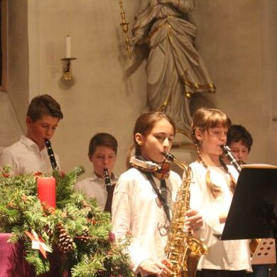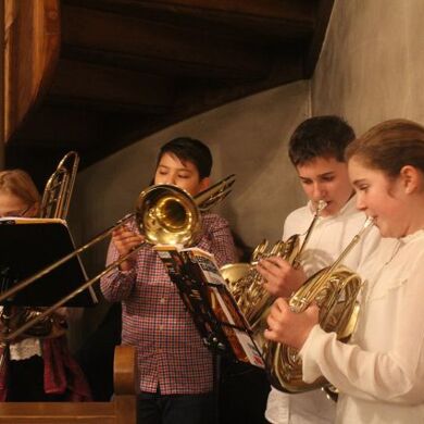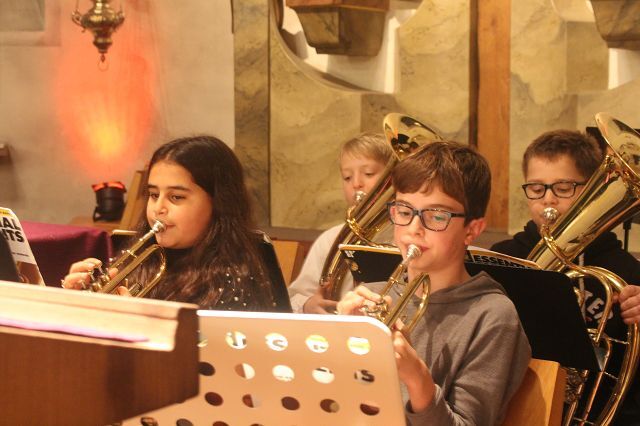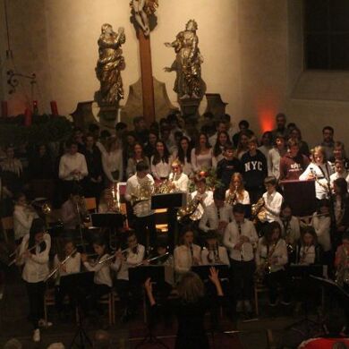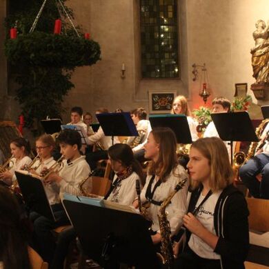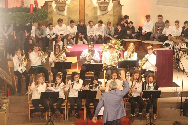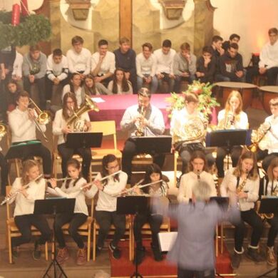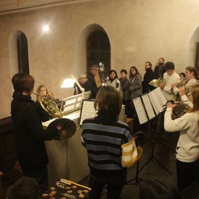 Herzlichen Dank an die katholische Gemeinde, die uns auch in diesem Jahr wieder die Kirche zur Verfügung gestellt und uns erlaubt hat, das Gemeindehaus zu benutzen, um die Sachen der Bläser unterzubringen und um den Glühwein und den Kinderpunsch heiß zu bekommen, der im Anschluss an das Konzert wieder vom Förderverein angeboten wurde.