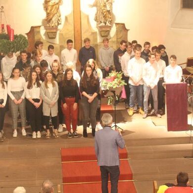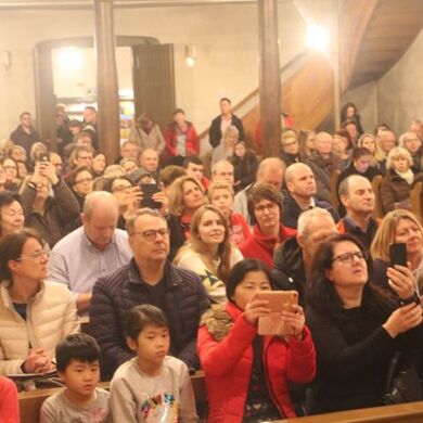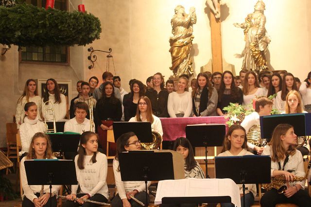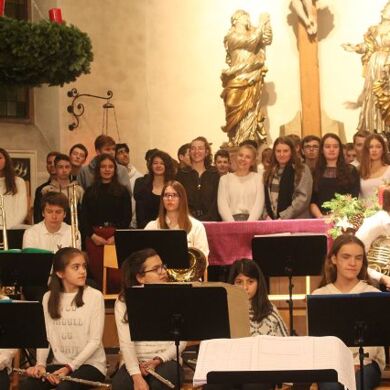 Wieder war die katholische Kirche in Fischbach bis zum letzten Platz gefüllt, als die Bläserinnen und Bläser, Pianistinnen und Pianisten, die Schlagzeugerinnen und Schlagzeuger und die Sängerinnen und Sänger der Gesamtschule Fischbach am letzten Dienstag vor den Weihnachtsferien zu ihrem Weihnachtskonzert einluden.