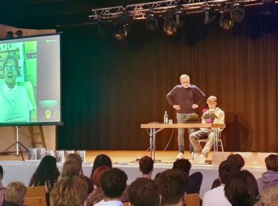 Herr Louis Pawellek, ein junger Autor aus Hannover, hat es sich zur Aufgabe gemacht, Zeitzeugen und Überlebende des Holocaust ausfindig zu machen, sie aufzusuchen und ihre persönlichen Geschichten aufzuschreiben. Herr Pawellek kommt schon seit einigen Jahren zu uns an die Schule und berichtet den Klassen des Jahrgangs 10 sowie der H 9 von den Erlebnissen der Betroffenen, die in jungen Jahren ins KZ kamen und diese Zeit glücklicherweise überlebten. Sehr sensibel schafft er es, der aktuellen jungen Generation die damaligen Geschehnisse näher zu bringen und, so schockierend sie auch gewesen sind, die jungen Menschen behutsam abzuholen und ihre Fragen zu beantworten.