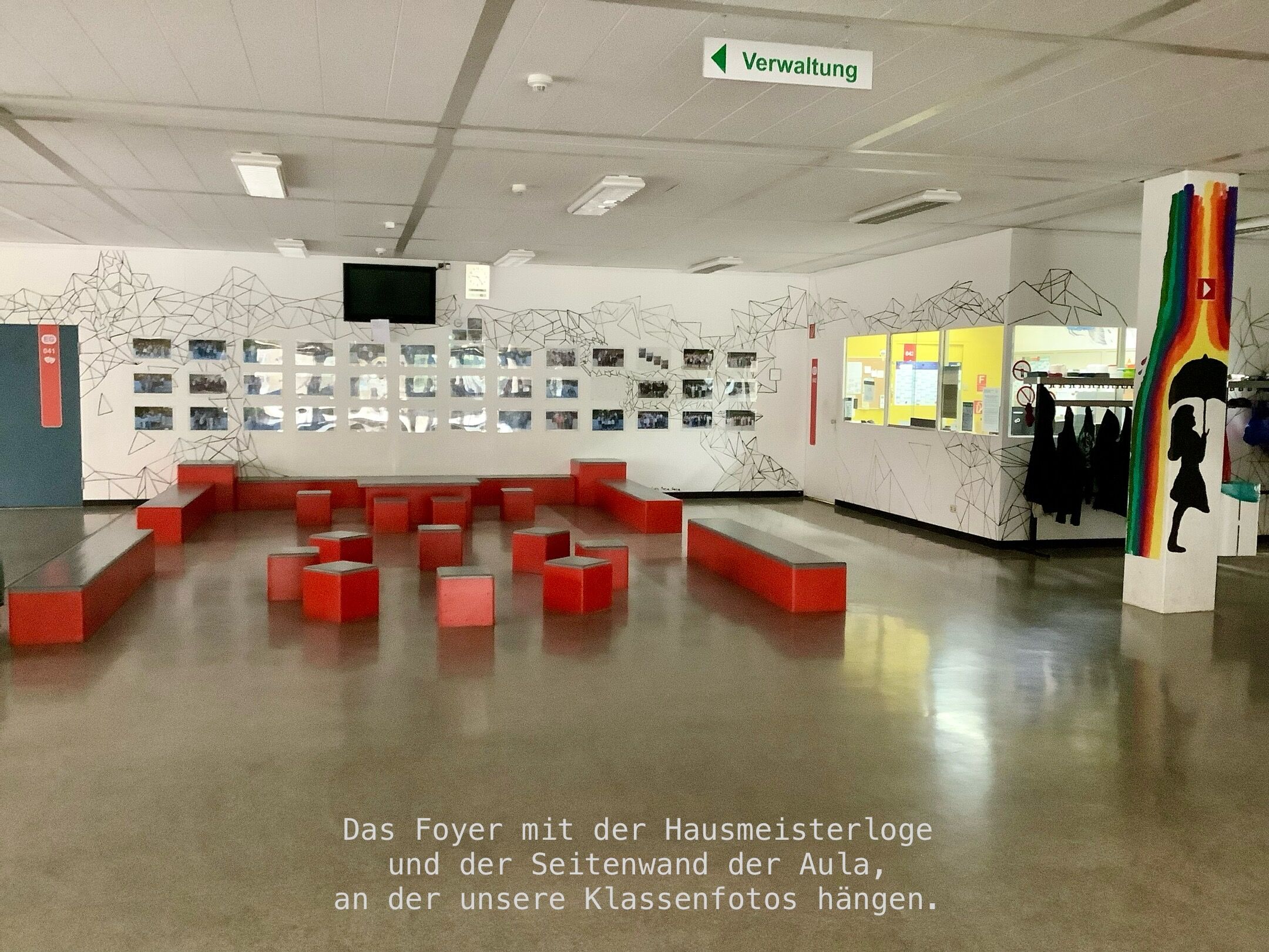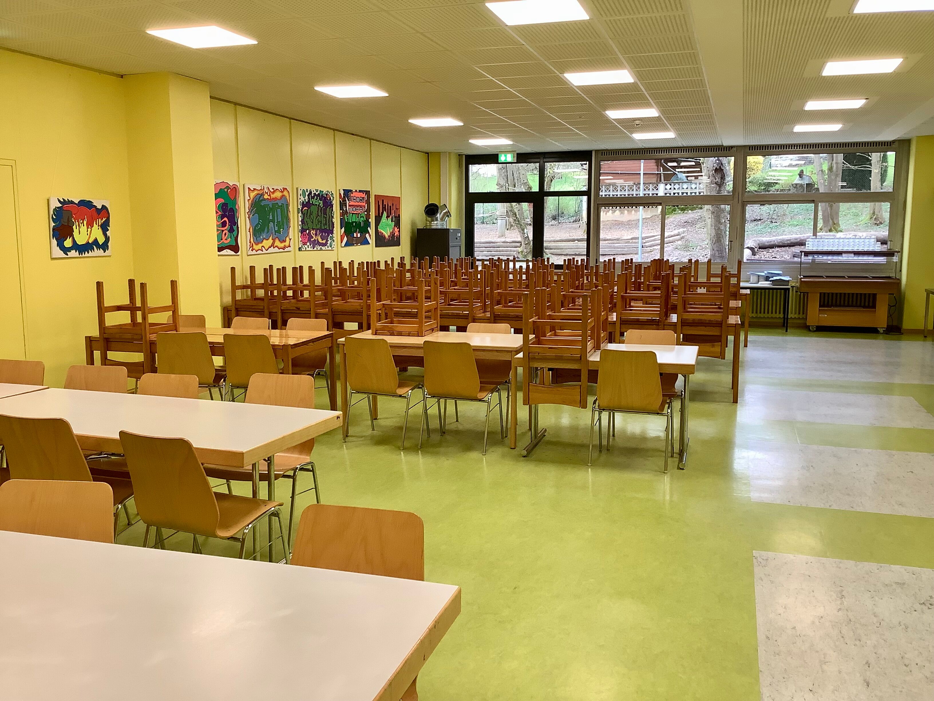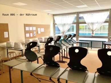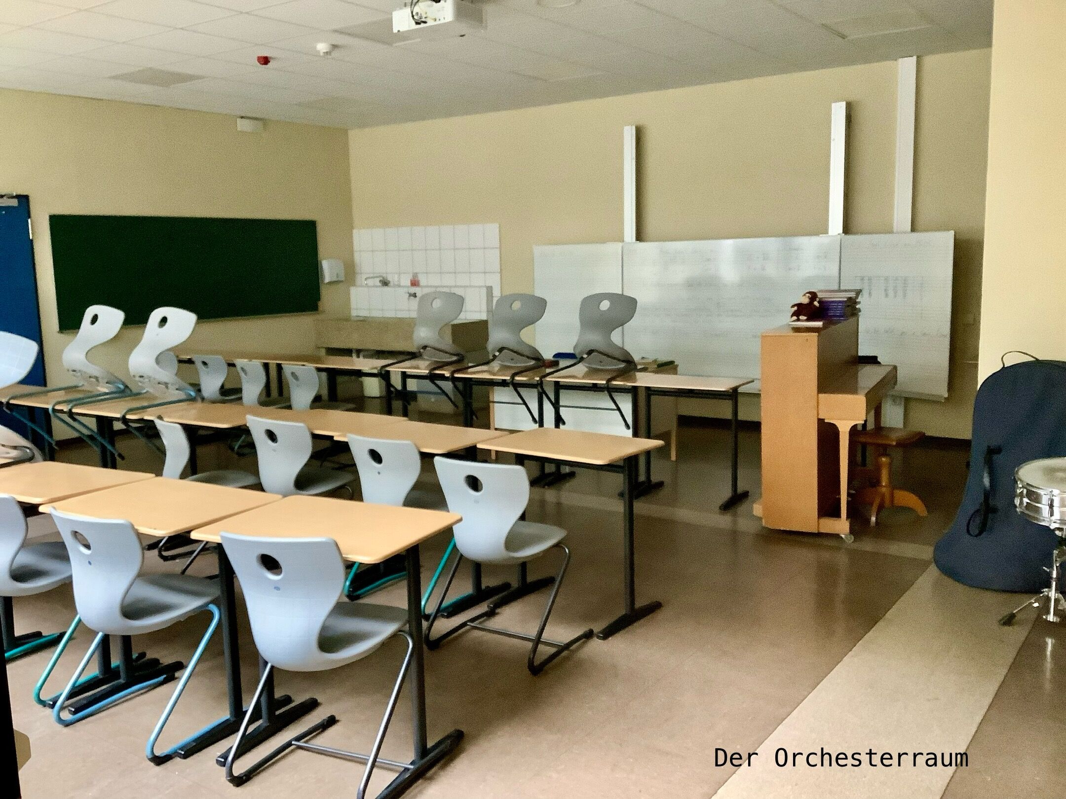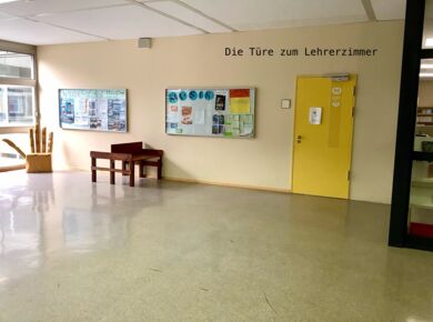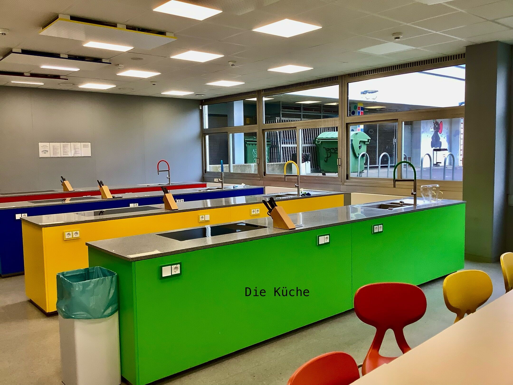 Sekretariat, das Lehrerzimmer, die Bibliothek, die Aula, die Mensa, den Nähraum, die Hausmeister und die Schulleitung sowie 15 Klassenräume.