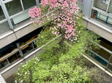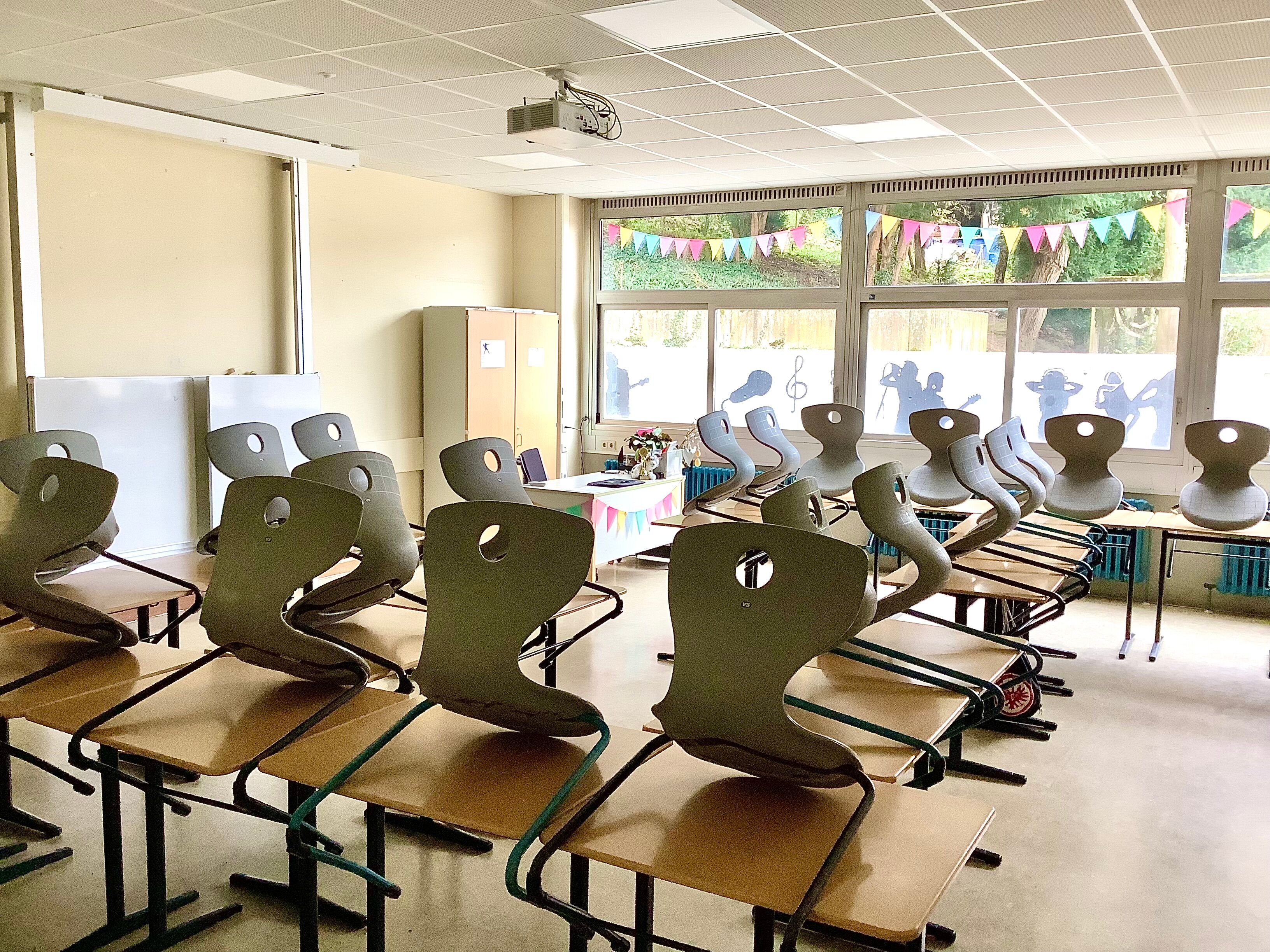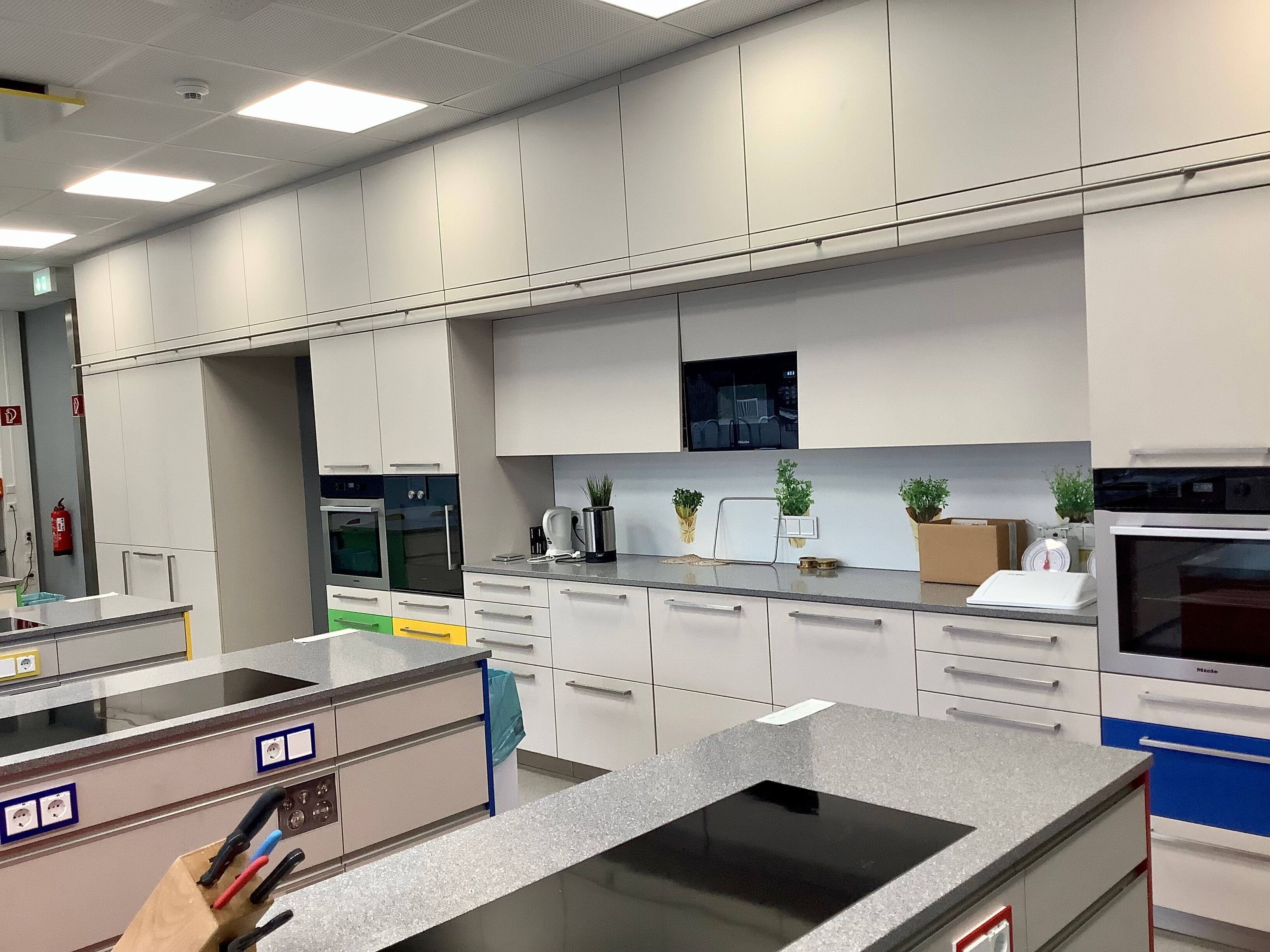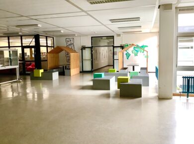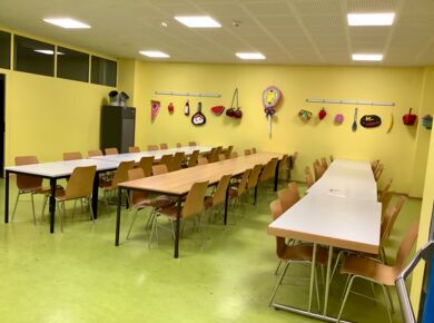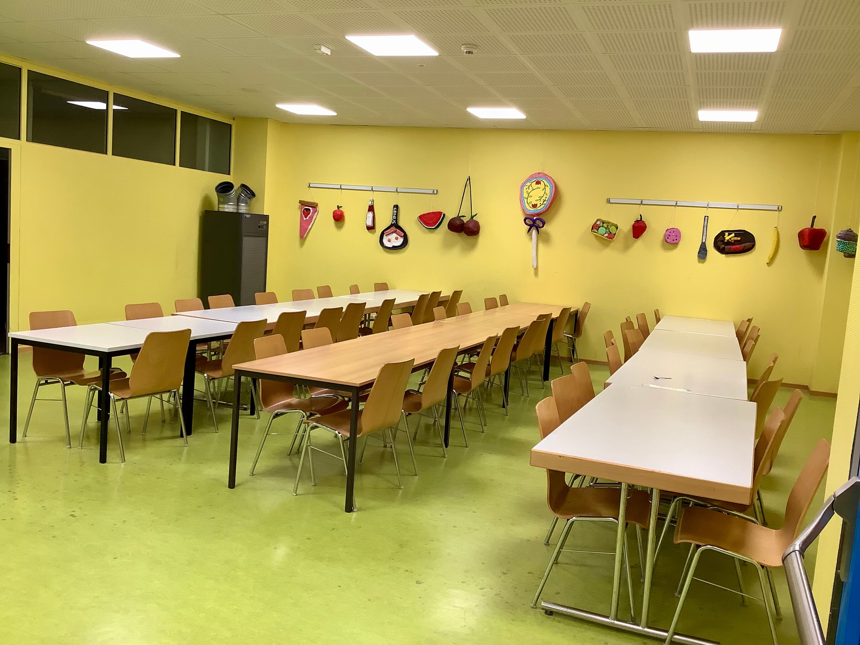 Sekretariat, das Lehrerzimmer, die Bibliothek, die Aula, die Mensa, den Nähraum, die Hausmeister und die Schulleitung sowie 15 Klassenräume.
