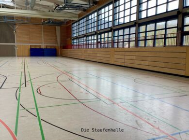 Gleich neben der Schule grenzt die Staufenhalle an, die die Gesamtschule Fischbach als Sporthalle nutzen kann. Im Sommer gehen viele Klassen während des Sportunterrichts gemeinsam auf den Sportplatz des SV Fischbachs, der zu Fuß in 5 Minuten zu erreichen ist.