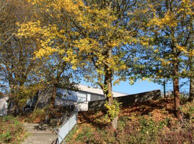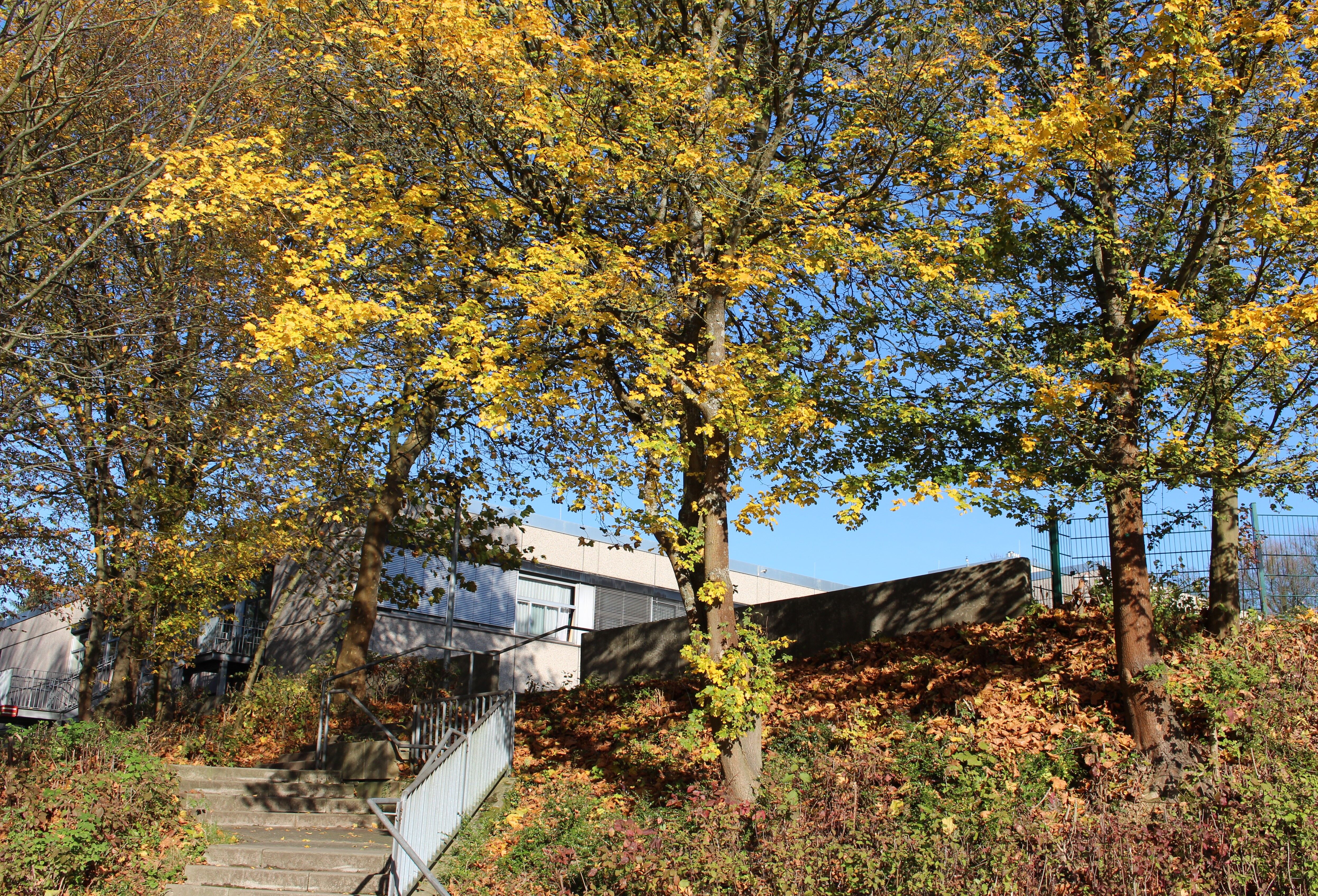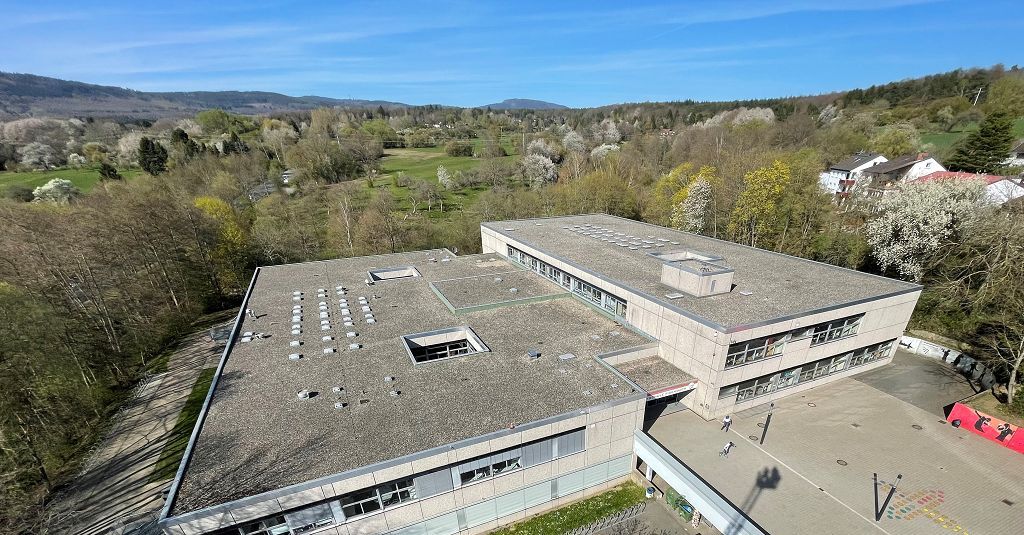 Die Gesamtschule Fischbach liegt mitten im Grünen,
