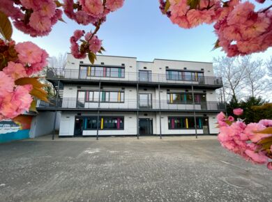 besteht aus 2 Gebäuden mit jeweils 3 Stockwerken,