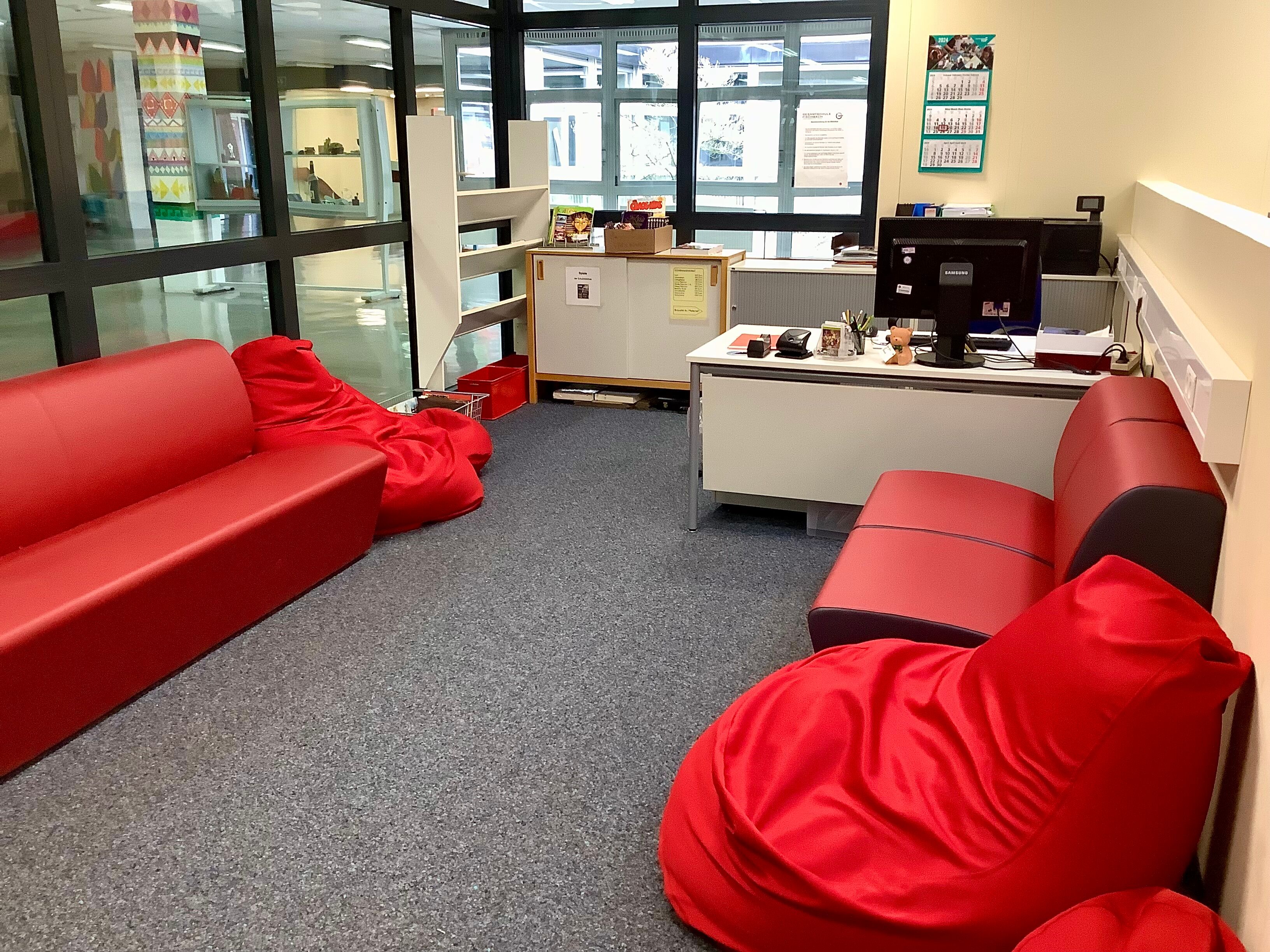 In den Pausen können eine begrenzte Anzahl von Schülerinnen und Schülern die Bücher verwenden, um sie in der Pause zu lesen oder auszuleihen. Auf gemütlichen Sitzsäcken, Sofas oder Stühlen am Tisch sitzend können es sich die Schülerinnen und Schüler bequem machen und sich in die Geschichten vertiefen.